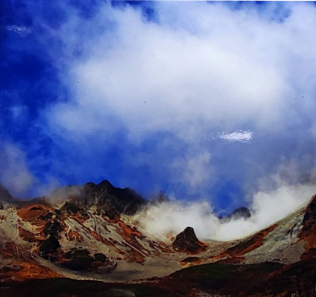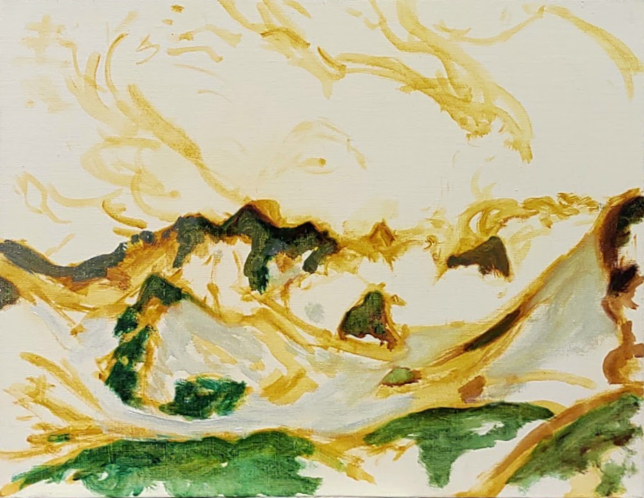 山の写真をもとにして。F6のキャンバスに。