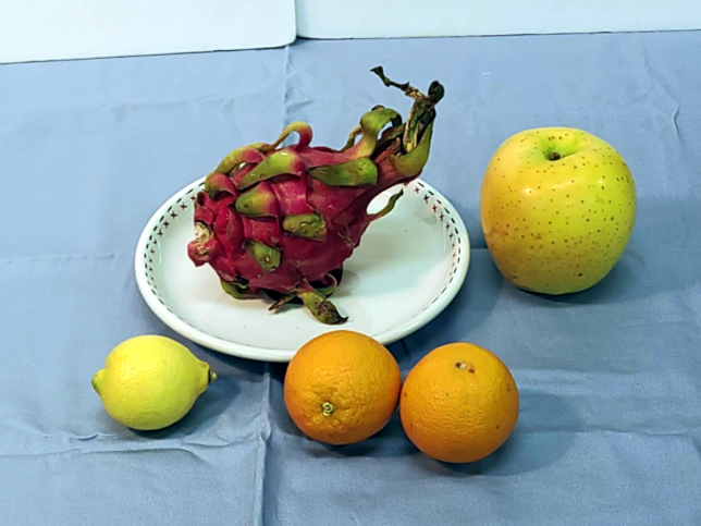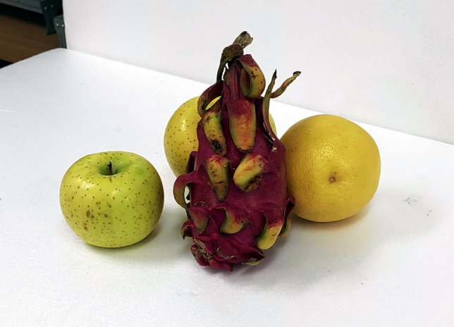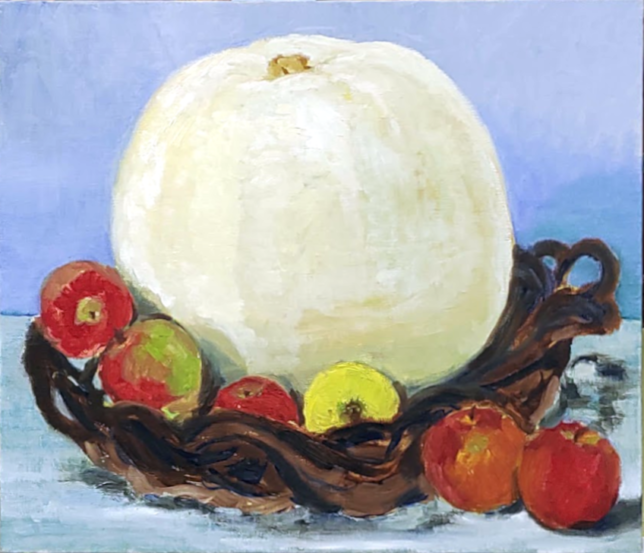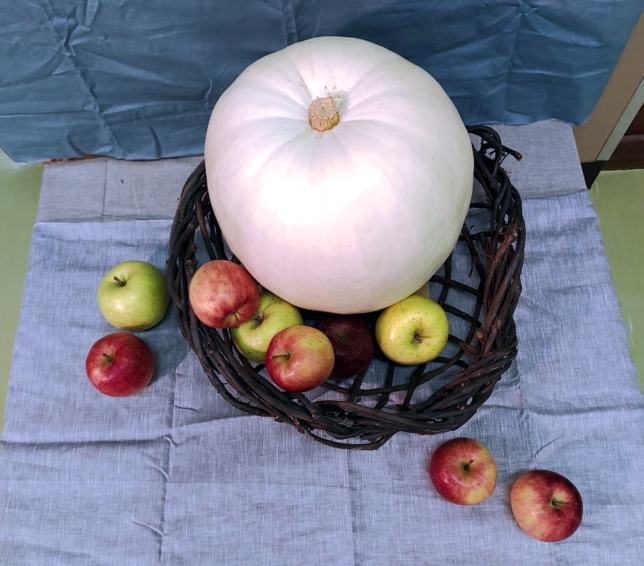 大きなカボチャとリンゴの組み合わせ。