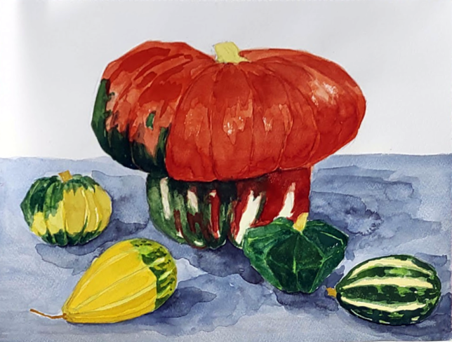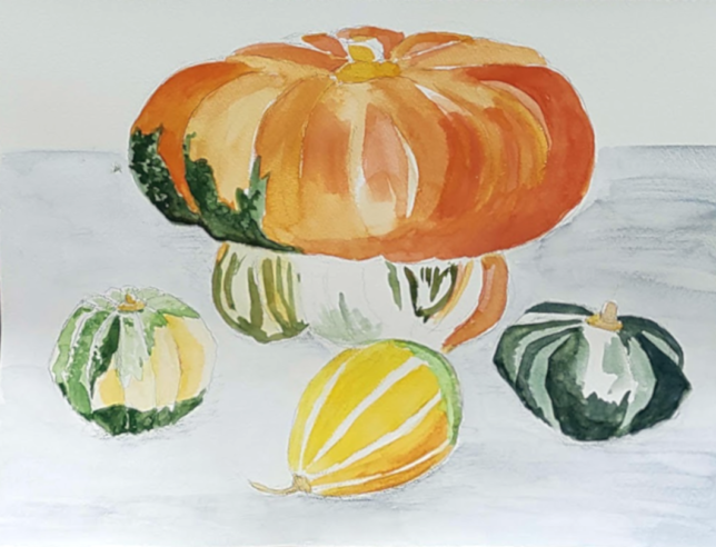 カボチャのモチーフを描いています。