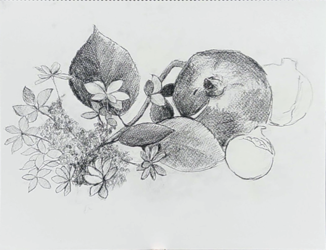 F6のスケッチブックに鉛筆画と透明水彩。