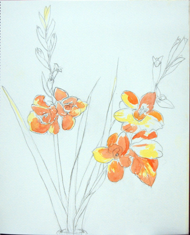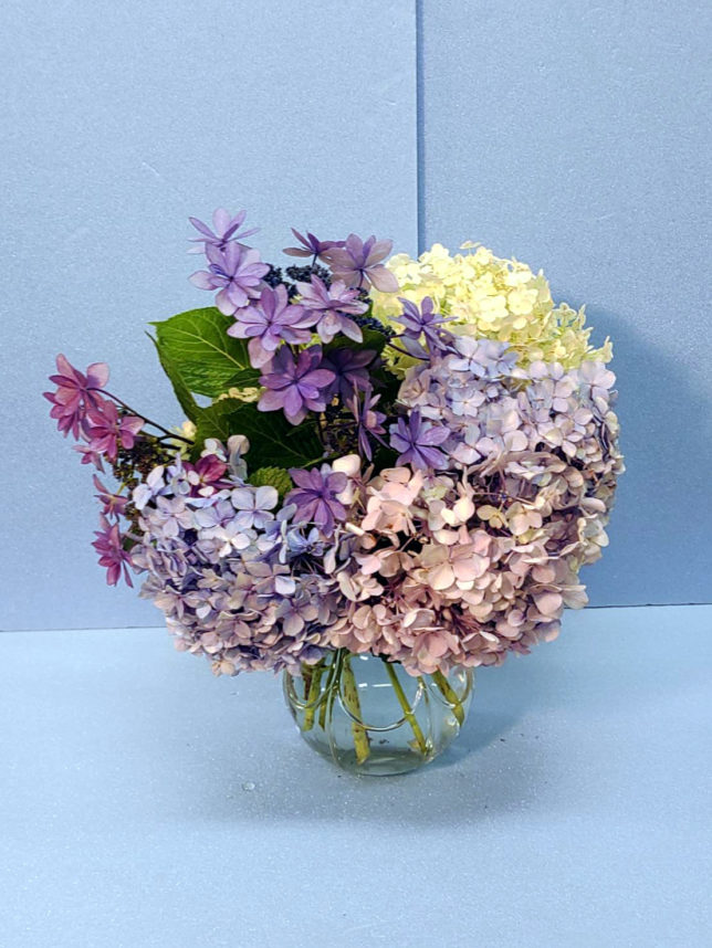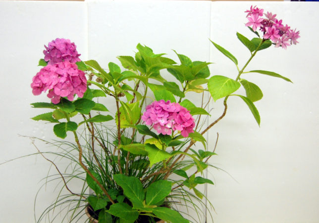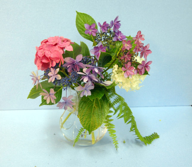 6月25日の教室から: ガーベラ・アガパンサス・紫陽花・野菜・石膏